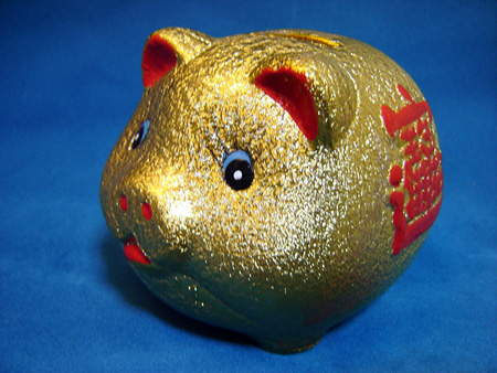 中国の福を呼ぶブタの貯金箱です。