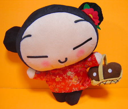 韓国・PUCCA中国服ぬいぐるみ(かご付き)