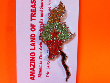 ミャンマー・国旗型キラキラブローチ(国旗カラー )